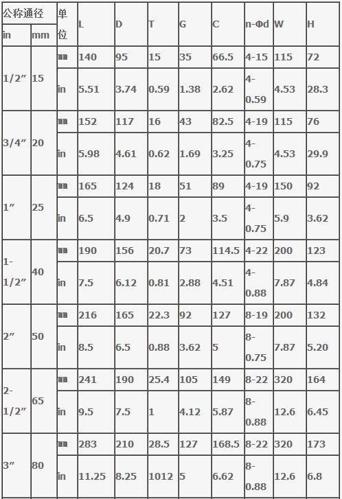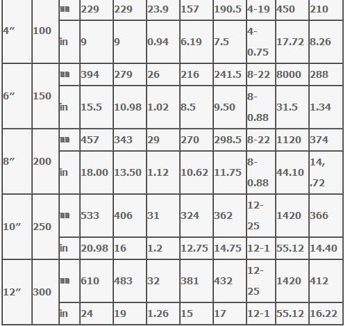 Q41H美標硬密封球閥150Lb產品主要尺寸: