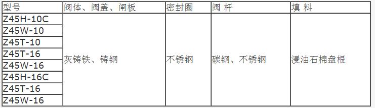 三、Z45H暗桿閘閥的零件材料: