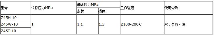 二、Z45H-10鑄鋼暗桿閘閥性能參數: