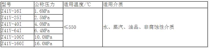 Z41Y 型PN16I~PN160I鉻鉬鋼楔式閘閥主要性能參數