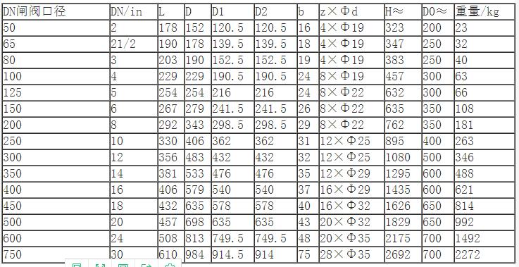 Z41Y-16I型鉻鉬鋼閘閥主要外形及結構尺寸(mm)