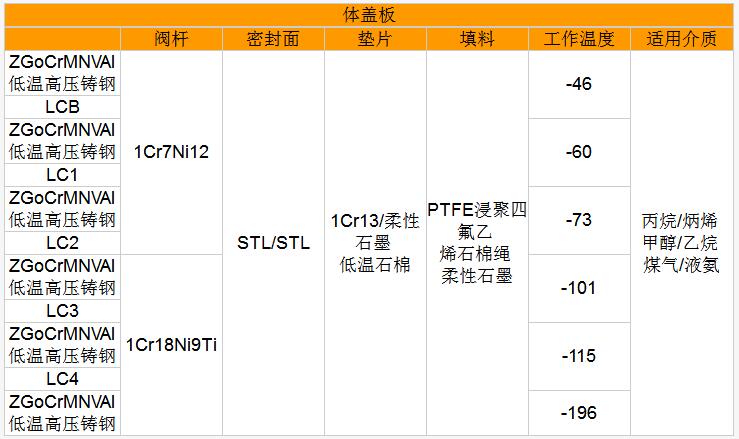 二、Z41H低溫法蘭閘閥主要零件材料及性能:
