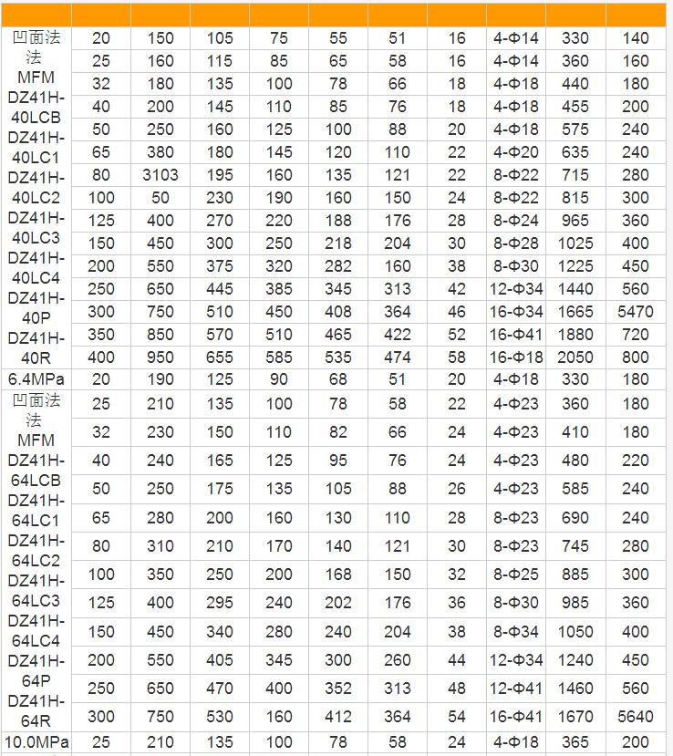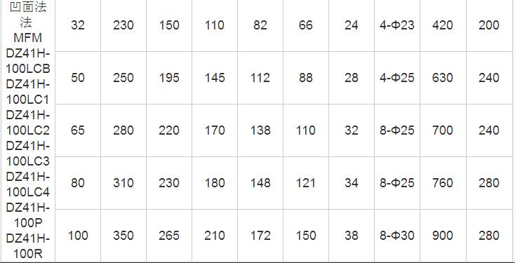 三、Z41H低溫法蘭閘閥規格主要尺寸(PN1.6MPa-2.5 MPa):
