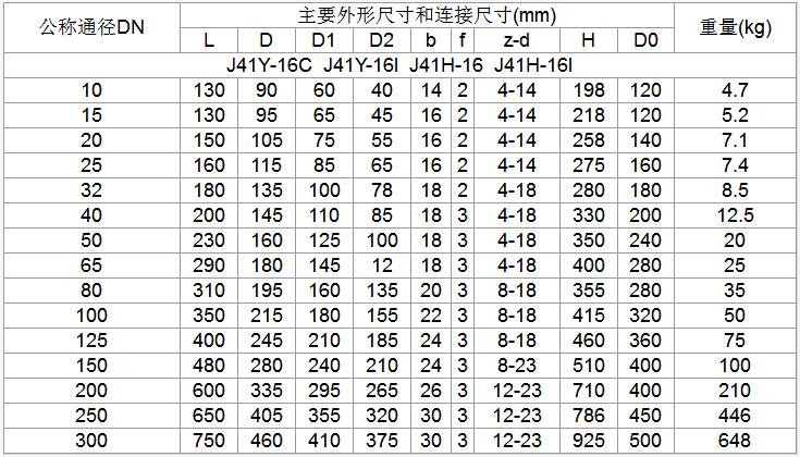 九、J941Y-64型、J941Y-100型J941Y-160型主要尺寸及重量