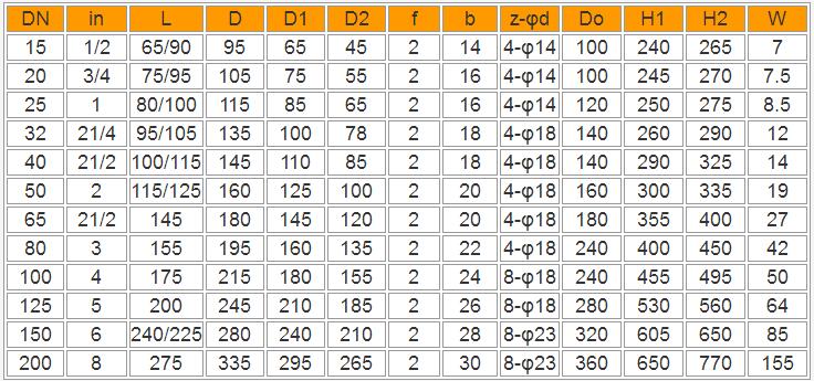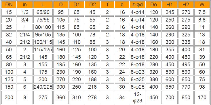 J44H角式截止閥2.5MPa主要連接尺寸: