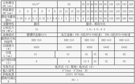 電動單座調節(jié)閥主要技術參數