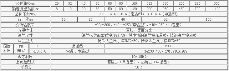 氣動薄膜單座調節閥規格與技術參數