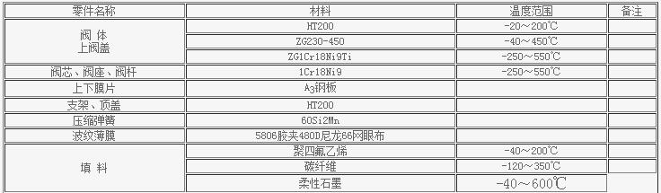 氣動薄膜單座調節閥主要零件材料及推薦使用溫度范圍