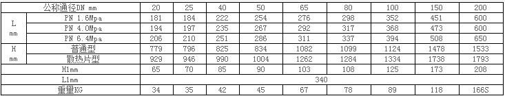 注:重量為PN64普通型上閥蓋的閥。