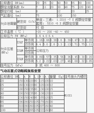 氣動活塞式切斷閥由氣動活塞式執行機構與直行程調節機構二部分組成,中間由支架連接而成。根據調節機構的型式,氣動活塞式切斷閥可分為直通單座切斷閥(ZSQP型)、直通套筒切斷閥(ZSQM型)、二位三通切斷閥(ZSQN型)三種型式。氣動活塞式執行機構有單作用(彈簧復位)和雙作用(雙進氣)二種。采用單作用執行機構,整機作用方式可分為氣關式(水平管路接通)和氣開式(水平管路斷開)。氣動活塞式切斷閥有硬密封和軟密封兩種密封形式,分別適用于不同的溫度及壓力。