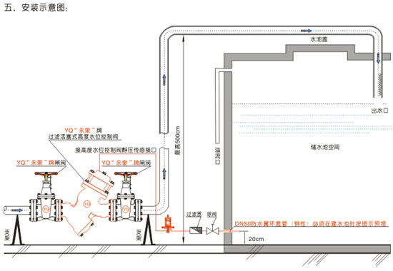 2、此閥必須安裝在水池外,便于調節和維護,避免進入水池操作的危險性。