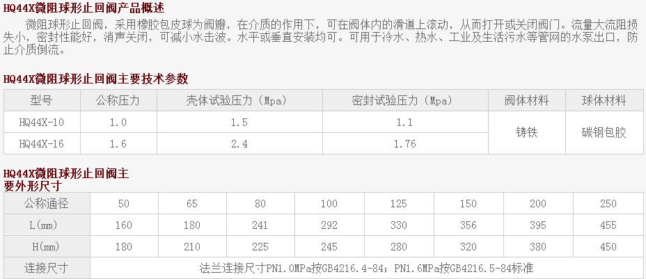 HQ44X微阻球形止回閥