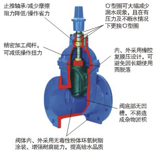 長期以來市場上使用的一般閘閥普遍存在漏水或生銹現象,本企業引進歐洲高科技閥門制造技術生產的彈性座封閘閥,克服了一般閘閥密封不良、彈性疲乏、橡膠老化及生銹等缺陷。彈性座封閘閥利用彈性閥門產生微量彈性變形的補償作用達到良好的密封效果,該閥具有開關輕巧、密封可靠 、彈性記憶佳及使用壽命長等顯著特點。可廣泛用于自來水、 污水、建筑、石油、化工、食品、醫藥、輕紡、電力、船舶、冶金、能源系統等流體管線上作為調節和截流裝置作用。